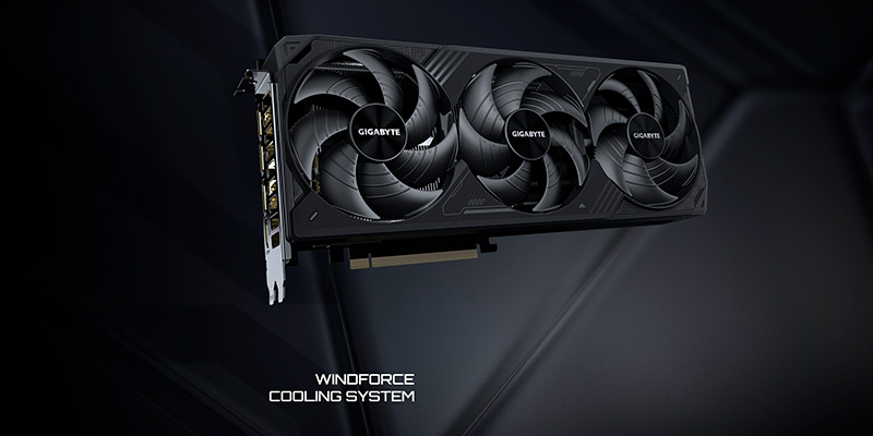Hệ thống làm mát WINDFORCE của Gigabyte sử dụng quạt Hawk với thiết kế quay luân phiên và công nghệ 3D Active Fan, giúp tản nhiệt hiệu quả và giảm tiếng ồn. Kết hợp với gel dẫn nhiệt cấp máy chủ, hệ thống này đảm bảo nhiệt độ hoạt động ổn định cho card đồ họa, kéo dài tuổi thọ và duy trì hiệu suất cao.