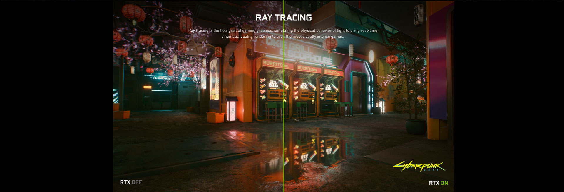 Ray tracing, RTX ON Trải nghiệm các tựa game bom tấn mới với chất lượng hình ảnh tuyệt vời chưa từng có nhờ công nghệ ray tracing với khả năng mô phỏng chính xác tương tác vật lí của tia sáng theo thời gian thực, đem lại hình ảnh chân thực như phim trên các tựa game có nền đồ họa cao cấp hiện nay. |