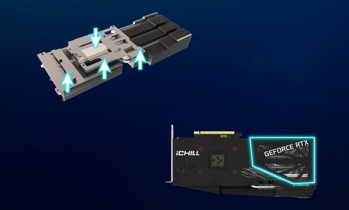Fan làm mát thứ 4 Ngoài 3 Fan 9cm VGA INNO3D GeForce RTX 3070 Ti Ichill X4 còn trang bị thêm một fan nhỏ 4.5cm ở thân card giúp tăng hiệu quả làm mát cho dàn MOSFET. |