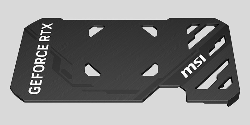Tấm Plate nhôm VGA RTX 4060 Ti VENTUS 2X 8G OC sử dụng tấm backplate bằng nhôm chắc chắn để bảo vệ card đồ họa, đồng thời tăng khả năng tản nhiệt cho linh kiện bên trong. |