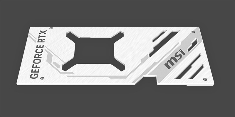 VGA MSI GeForce RTX 4070 VENTUS 2X WHITE 12G OC sử dụng tấm backplate bằng nhôm chắc chắn để bảo vệ card đồ họa, đồng thời tăng khả năng tản nhiệt cho linh kiện bên trong.