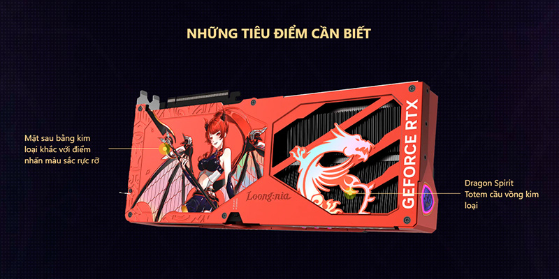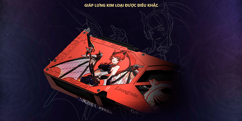 Card được hoàn thiện với backplate kim loại khắc chìm, vừa tăng độ cứng cáp vừa hỗ trợ tản nhiệt nhờ khe thoát khí được bố trí hợp lý. Kích thước 338 x 140 x 50 mm cùng trọng lượng 1282g (card) / 2100g (đóng gói) phù hợp với đa dạng case chuẩn ATX. Thiết kế MLG Edition mang đến phong cách mạnh mẽ, cá tính và đậm chất gaming, biến card không chỉ là linh kiện hiệu năng cao mà còn là điểm nhấn thẩm mỹ trong dàn PC.