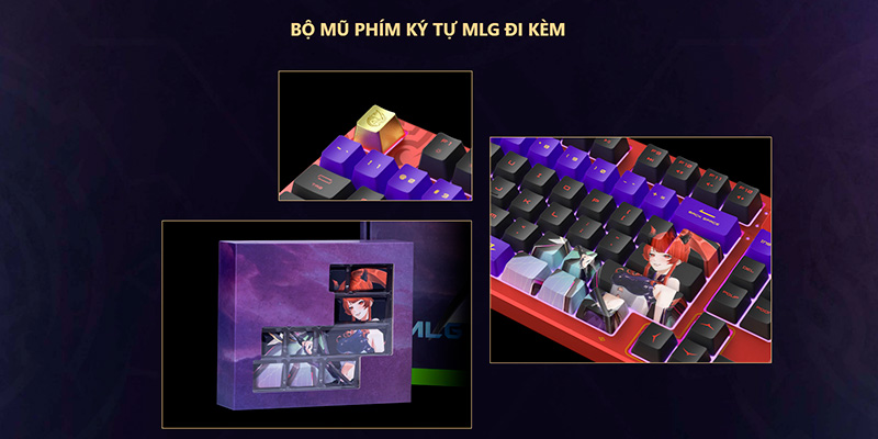 Bộ 10 keycaps có biểu tượng MLG và huy hiệu vàng—tăng sức mạnh cho phím, làm chủ trò chơi của bạn.