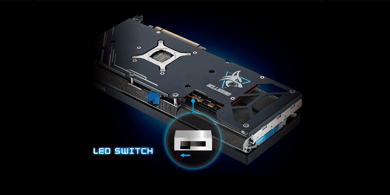 VGA PowerColor Radeon Hellhound RX 7800 XT với đèn LED màu tím thạch anh tím được thêm vào hoàn toàn mới trong khi vẫn giữ màu xanh trước đó, người dùng có thể chọn màu mình muốn bằng cách gạt công tắc ở bên cạnh card.