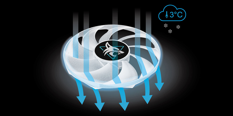 VGA PowerColor Radeon Hellhound RX 7800 XT 16G OC GDDR6 có thiết kế mới nhất với 9 cánh quạt tạo ra luồng khí và áp suất không khí tốt hơn trong cùng mức độ ồn, cải thiện hiệu suất làm mát để giảm nhiệt độ GPU hơn 3oC so với các thế hệ trước.