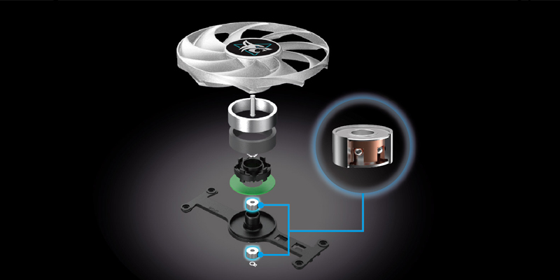 Vòng bi kép làm giảm ma sát quay, mang lại khả năng tản nhiệt tuyệt vời và tăng gấp đôi tuổi thọ dự kiến của quạt một cách hiệu quả