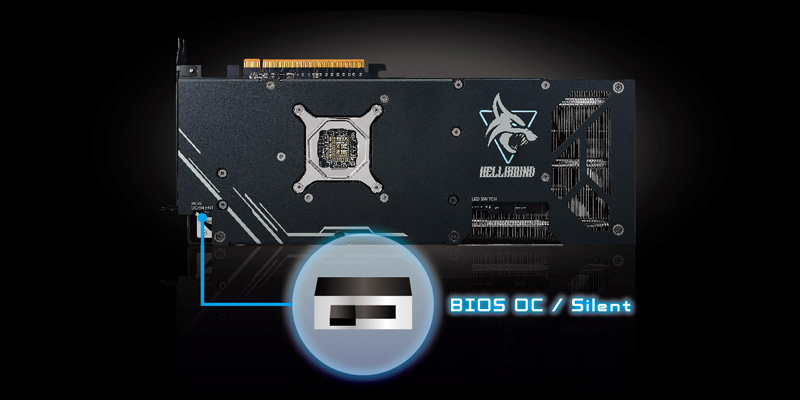 VGA PowerColor Radeon Hellhound RX 7800 XT sở hữu 2 chế độ BIOS, với OC BIOS là chế độ tăng cường giúp tăng tốc độ quay của quạt để giữ cho card của bạn hoạt động ở nhiệt độ thấp hơn nhằm mang lại hiệu suất cao hơn. Và silent BIOS: Tập trung vào độ ồn thấp hơn và tuổi thọ của quạt, tốc độ quạt nhẹ hơn, chuyển tốc độ quạt và tiếng ồn sang nhiệt độ vừa phải nhưng vẫn được kiểm soát trong khi vẫn duy trì hiệu suất 1.