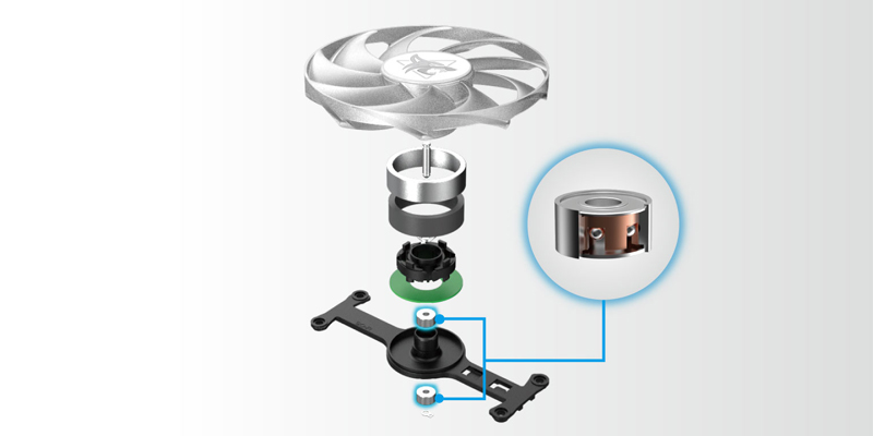 Vòng bi kép làm giảm ma sát quay, mang lại khả năng tản nhiệt tuyệt vời và tăng gấp đôi tuổi thọ dự kiến của quạt một cách hiệu quả