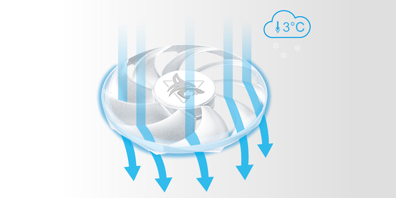 VGA PowerColor Radeon Hellhound Spectral White RX 7800 XT có thiết kế mới nhất với 9 cánh quạt tạo ra luồng khí và áp suất không khí tốt hơn trong cùng mức độ ồn, cải thiện hiệu suất làm mát để giảm nhiệt độ GPU hơn 3oC so với các thế hệ trước.