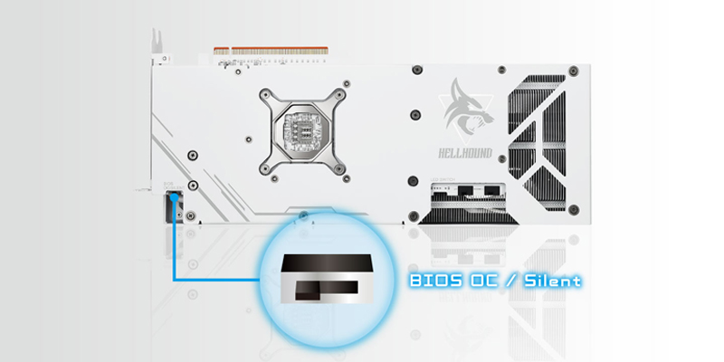 VGA PowerColor Radeon Hellhound Spectral White RX 7800 XT sở hữu 2 chế độ BIOS, với OC BIOS là chế độ tăng cường giúp tăng tốc độ quay của quạt để giữ cho card của bạn hoạt động ở nhiệt độ thấp hơn nhằm mang lại hiệu suất cao hơn. Và silent BIOS: Tập trung vào độ ồn thấp hơn và tuổi thọ của quạt, tốc độ quạt nhẹ hơn, chuyển tốc độ quạt và tiếng ồn sang nhiệt độ vừa phải nhưng vẫn được kiểm soát trong khi vẫn duy trì hiệu suất.