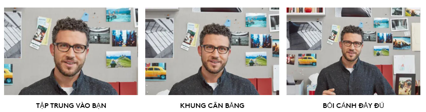|  | Có thể điều chỉnh góc nhìn Để lấy khung góc độ đầu và vai lý tưởng, hãy chọn góc nhìn 65°. Để lấy nhiều cảnh căn phòng hơn, hãy chọn các góc nhìn 78° hoặc 90°. Dù bạn chọn cài đặt góc nhìn nào, bạn đều có thể xem cận cảnh hơn với chức năng thu phóng HD 4x ở độ phân giải 1080p. |