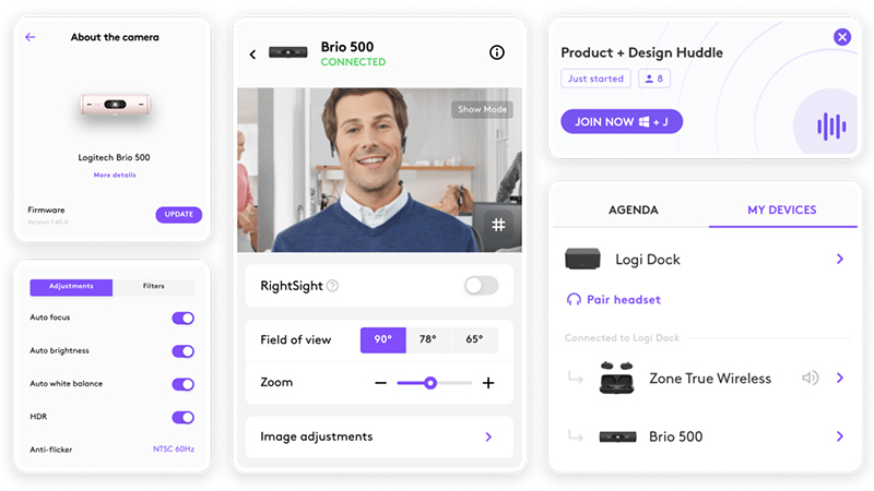 |  | Tối ưu cho mọi cuộc họp Logitech Brio 500 là webcam cho doanh nghiệp tốt nhất và tiên tiến nhất được trang bị các công nghệ đổi mới, Brio 500 nâng tầm cho trải nghiệm hợp tác video FHD. Công nghệ RightLight 4 và dải tương phản động mở rộng (HDR) tự động điều chỉnh để giúp bạn có hình ảnh đẹp nhất ở mọi điều kiện ánh sáng, bao gồm ánh sáng yếu, ánh nắng trực tiếp hay ánh sáng có độ tương phản cao. |