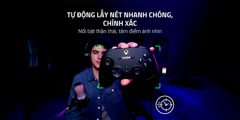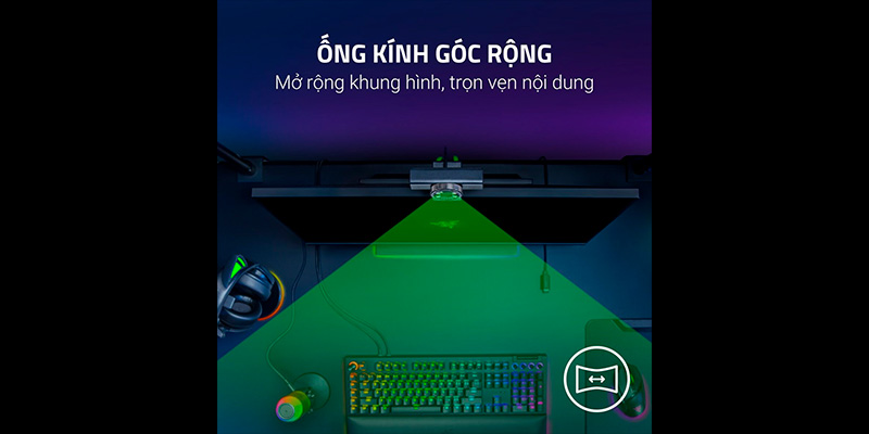 Trái tim của Razer Kiyo V2 X là cảm biến hình ảnh 3.7 MP chất lượng cao, được thiết kế để bắt trọn mọi khoảnh khắc với độ trung thực màu sắc ấn tượng. Cảm biến này kết hợp với ống kính có tiêu cự 3.4 mm (tương đương 25 mm trên máy ảnh full-frame) mang lại góc nhìn Field of View 80° rộng rãi. Góc nhìn này đủ rộng để bao quát không gian xung quanh bạn hoặc thêm một người nữa vào khung hình mà không gây hiệu ứng mắt cá méo mó, rất lý tưởng cho các buổi trò chuyện nhóm hoặc stream IRL. Bên cạnh đó, tính năng lấy nét tự động (Auto Focus) hoạt động nhanh nhạy giúp khuôn mặt bạn luôn sắc nét dù có di chuyển qua lại, hoặc bạn có thể chuyển sang chế độ lấy nét thủ công để cố định điểm nhìn theo ý muốn nghệ thuật của mình.