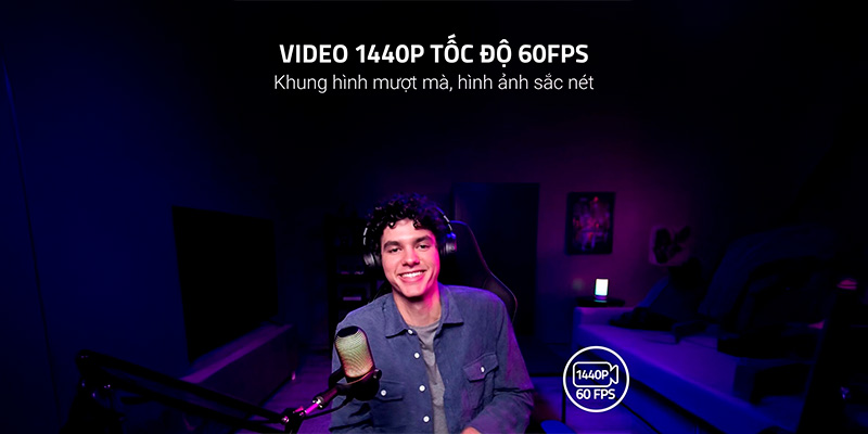 Webcam máy tính Razer Kiyo V2 X 2K RZ19-05380100-R3M1 nâng tầm chất lượng hình ảnh của bạn lên một đẳng cấp mới, bỏ xa các tiêu chuẩn Full HD thông thường. Điểm mạnh vượt trội của sản phẩm này là khả năng quay video ở độ phân giải 1440p (2K) với tốc độ khung hình 30 FPS, mang lại độ chi tiết sắc sảo và rõ nét đáng kinh ngạc cho các buổi livestream. Nếu bạn ưu tiên sự mượt mà trong các tựa game hành động nhịp độ cao, webcam cho phép chuyển sang chế độ 1080p 60 FPS, giúp mọi chuyển động của bạn trở nên trơn tru, tự nhiên và không hề có hiện tượng nhòe hình. Sự linh hoạt trong tùy chọn độ phân giải này giúp các streamer và nhà sáng tạo nội dung dễ dàng tối ưu hóa chất lượng luồng phát sóng, đảm bảo người xem luôn được thưởng thức những hình ảnh sống động và chuyên nghiệp nhất.
