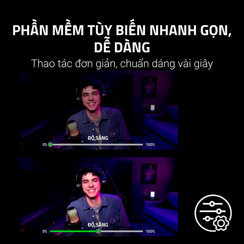 Để khai thác tối đa tiềm năng của phần cứng, Razer cung cấp khả năng tùy biến mạnh mẽ thông qua phần mềm Razer Synapse. Người dùng có thể truy cập vào các cài đặt chất lượng hình ảnh cơ bản (Basic image customization) để tinh chỉnh độ sáng, độ tương phản, độ bão hòa và cân bằng trắng sao cho phù hợp nhất với điều kiện ánh sáng phòng của mình. Bạn có thể lưu lại các thiết lập này thành các hồ sơ riêng biệt để chuyển đổi nhanh chóng giữa các bối cảnh khác nhau, ví dụ như chế độ "Gaming" rực rỡ hay chế độ "Meeting" trang nhã. Việc làm chủ hoàn toàn các thông số hình ảnh giúp bạn luôn xuất hiện với diện mạo hoàn hảo nhất trước ống kính, thể hiện sự chuyên nghiệp và chỉn chu trong mọi lần lên sóng.